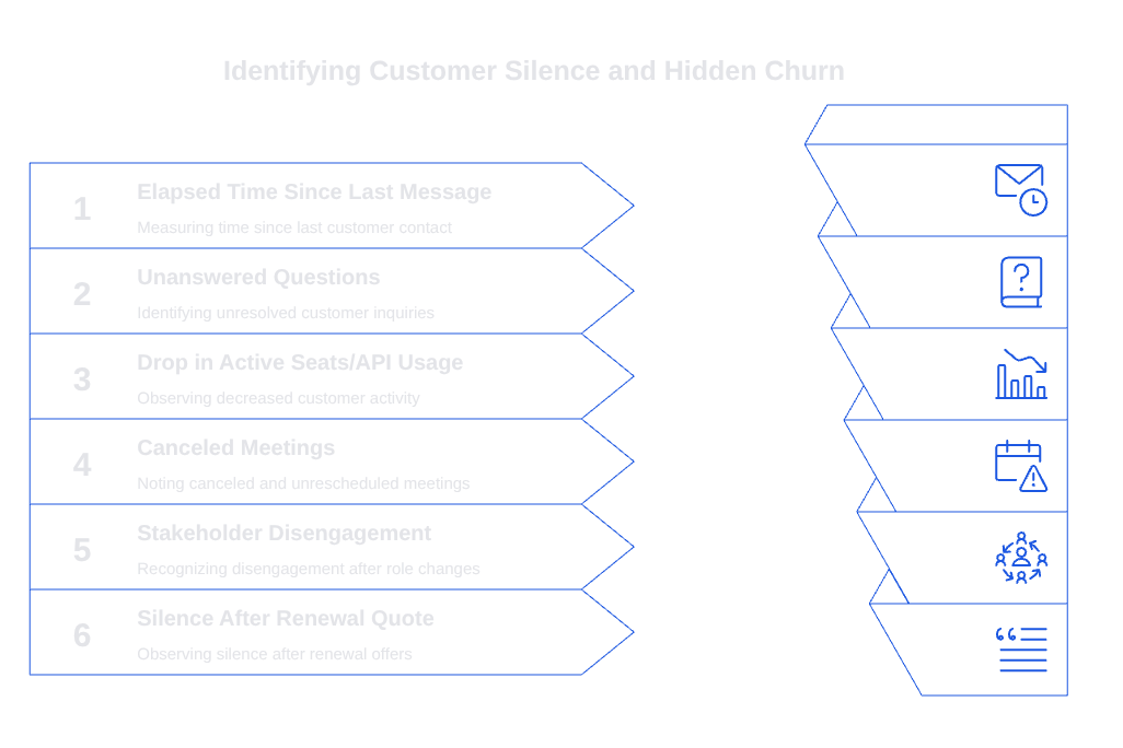 AI can analyze activity patterns, communication gaps, and sentiment in customer interactions to flag silent periods as potential risks. Ignoring these signals can lead to overlooked churn triggers and missed opportunities for proactive engagement.